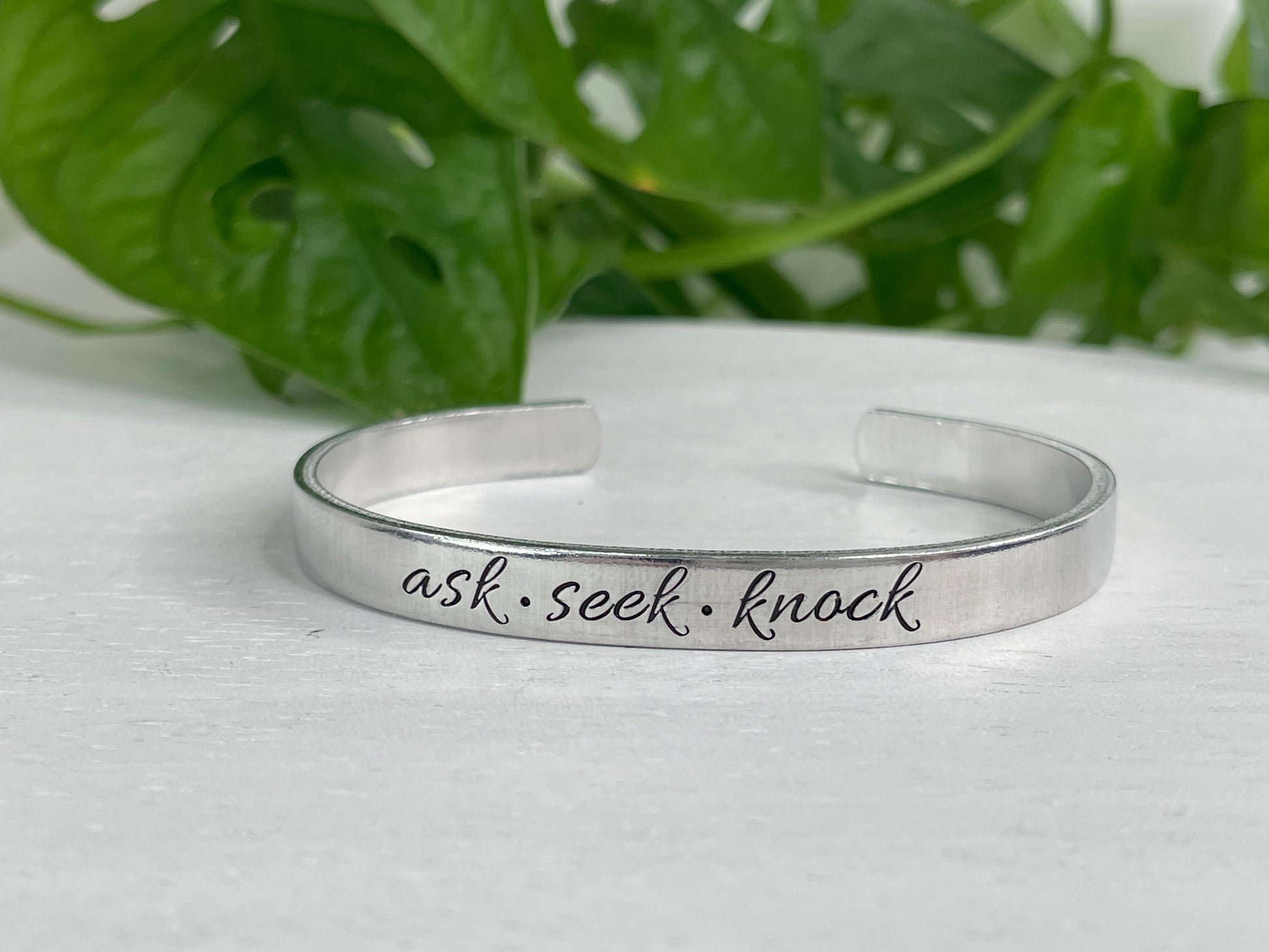 All of our items are hand stamped one letter at a time. Because of this, the piece you receive may differ slightly from the picture. This is the nature of hand stamping and adds to the beauty and uniqueness of each piece.