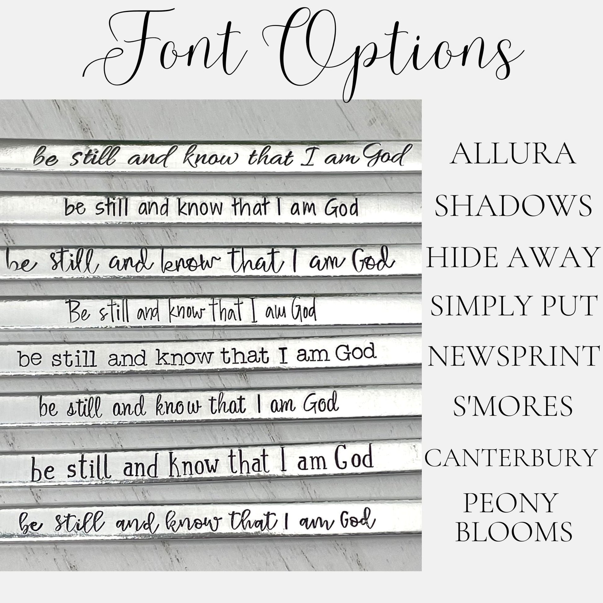 All of our items are hand stamped one letter at a time. Because of this, the piece you receive may differ slightly from the picture. This is the nature of hand stamping and adds to the beauty and uniqueness of each piece.